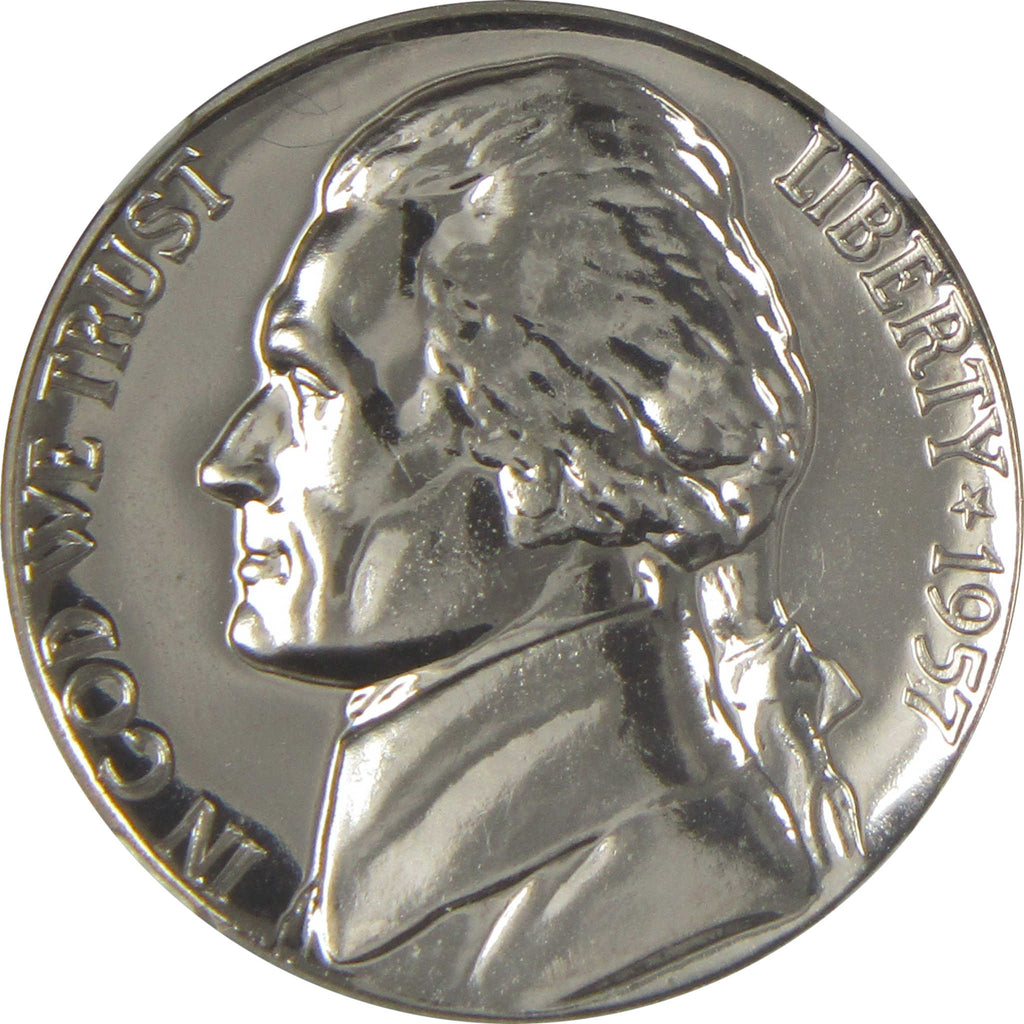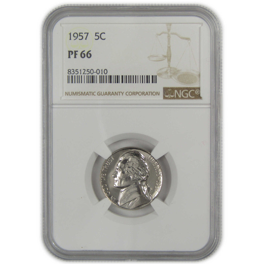 A genuine 1957 Jefferson Nickel Proof Coin, graded and certified PF 66 by NGC