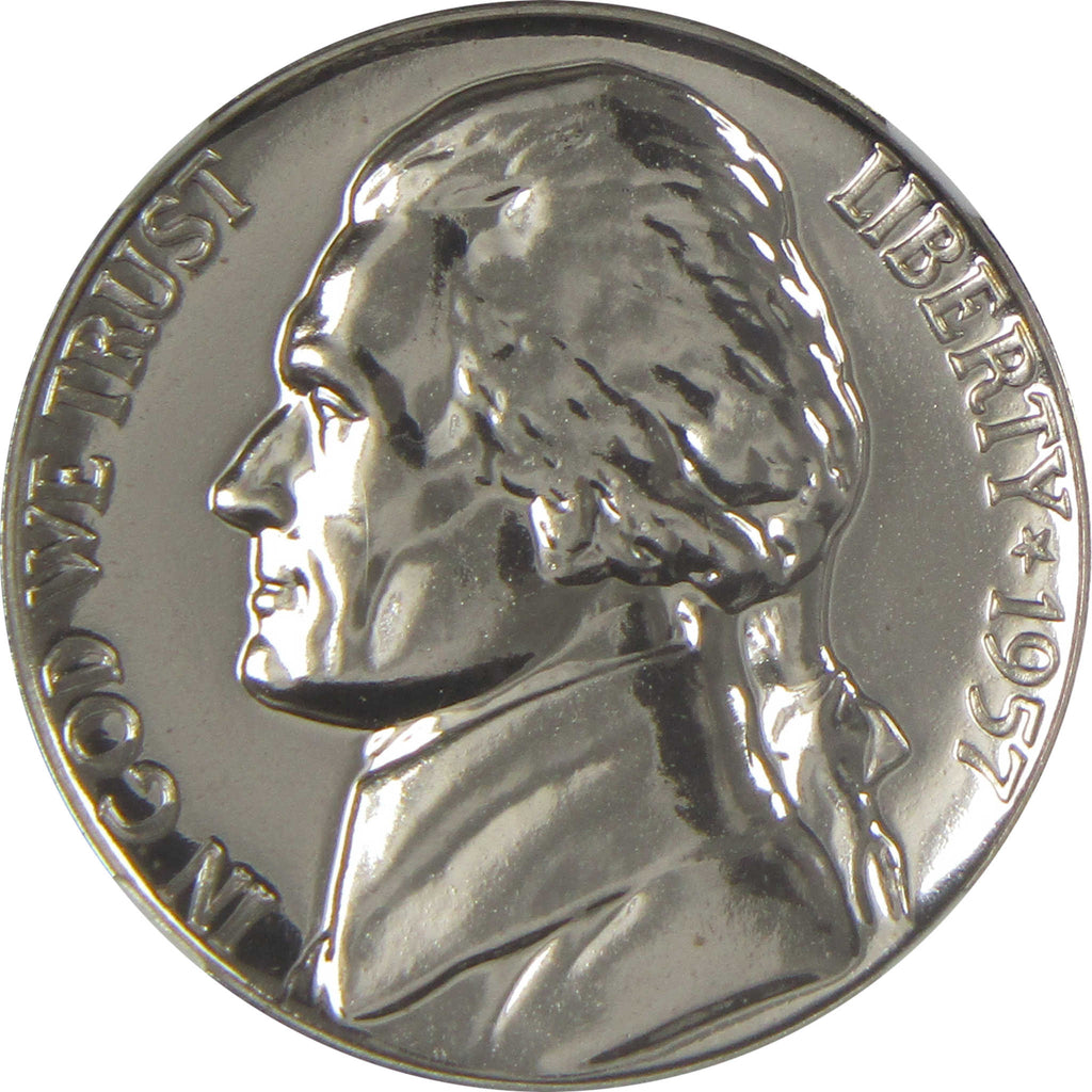 A genuine 1957 Jefferson Nickel Proof Coin, graded and certified PF 68 by NGC