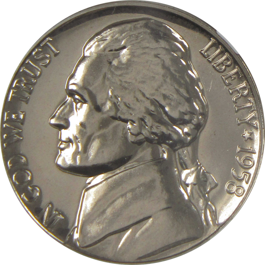 A genuine 1958 Jefferson Nickel Proof Coin, graded and certified PF 66 by NGC