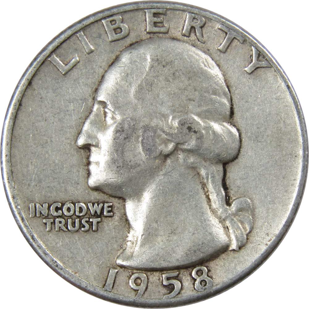 A genuine 1958 Washington Silver Quarter Coin, in Circulated Condition. Contains 90% Silver