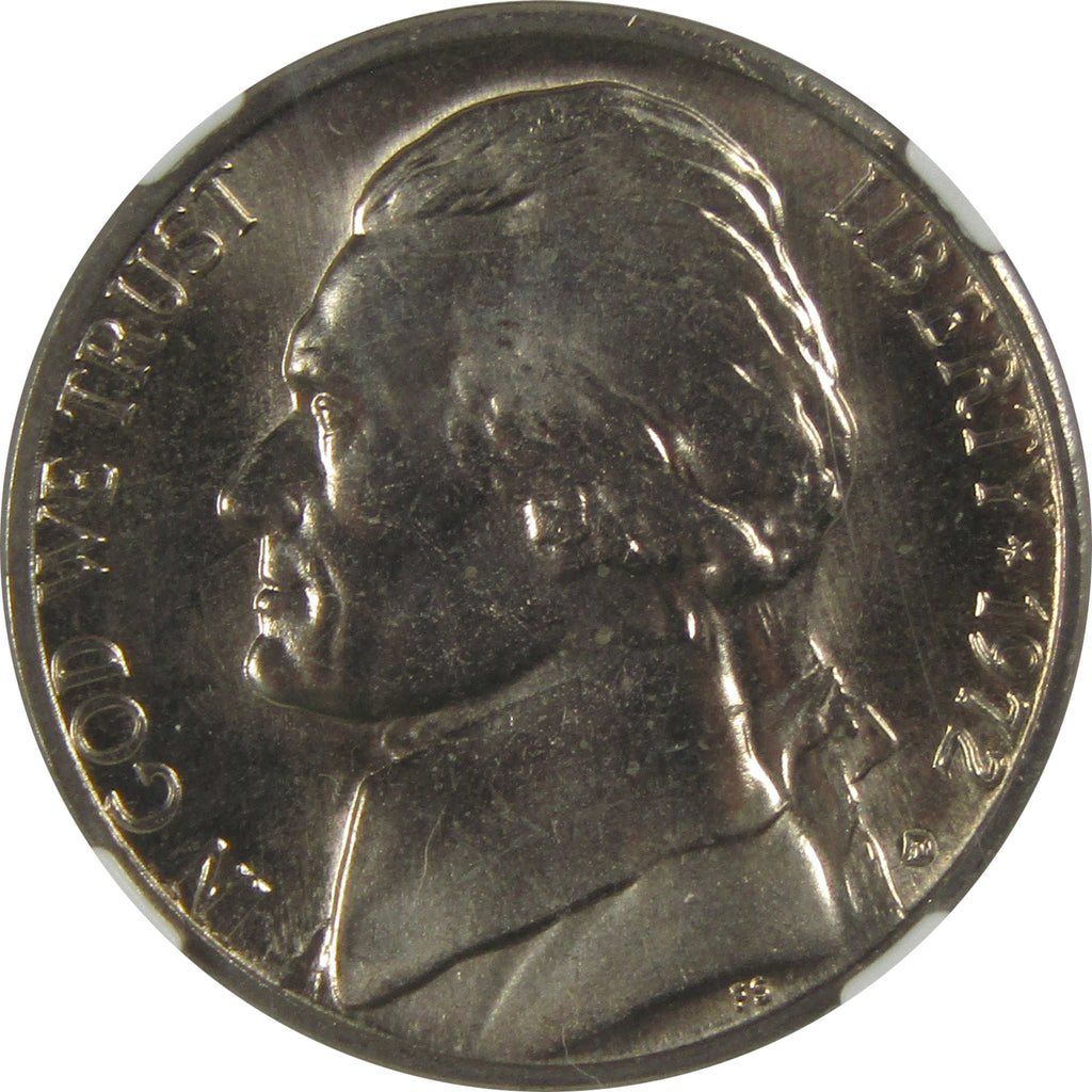 A genuine 1972 D Jefferson Nickel Coin, graded and certified MS 66 5FS by NGC. Comes with a fragment of an original vintage canvas bag embedded in the label