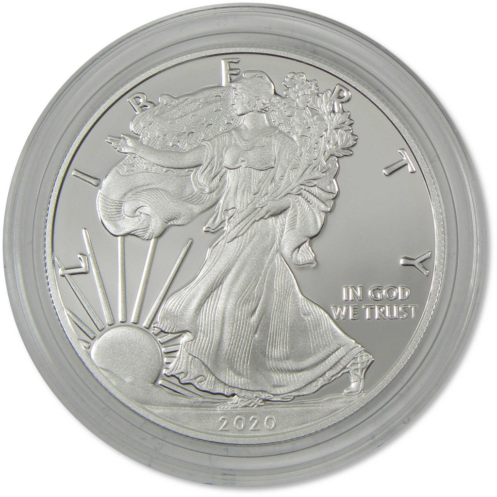 A genuine 2020 W American Eagle Silver Dollar Bullion Coin, in Choice Proof Condition. Contains 1 oz 0.999 Silver. Comes with the original government packaging, including a certificate of authenticity