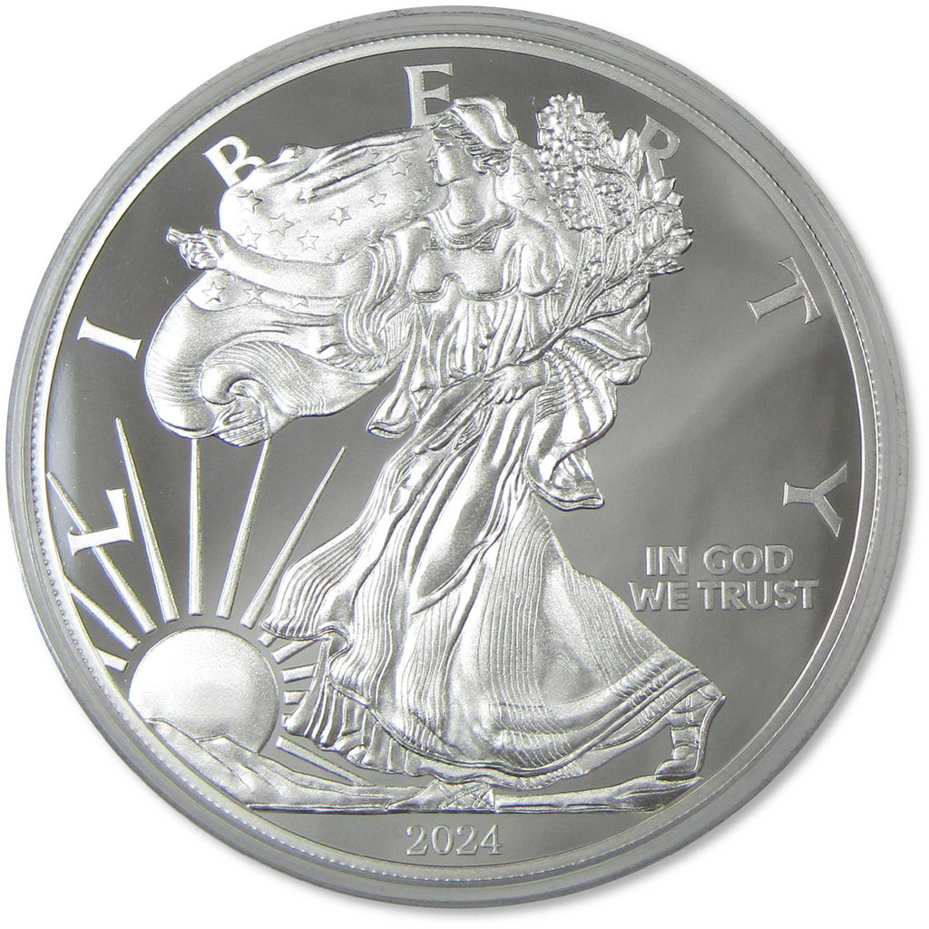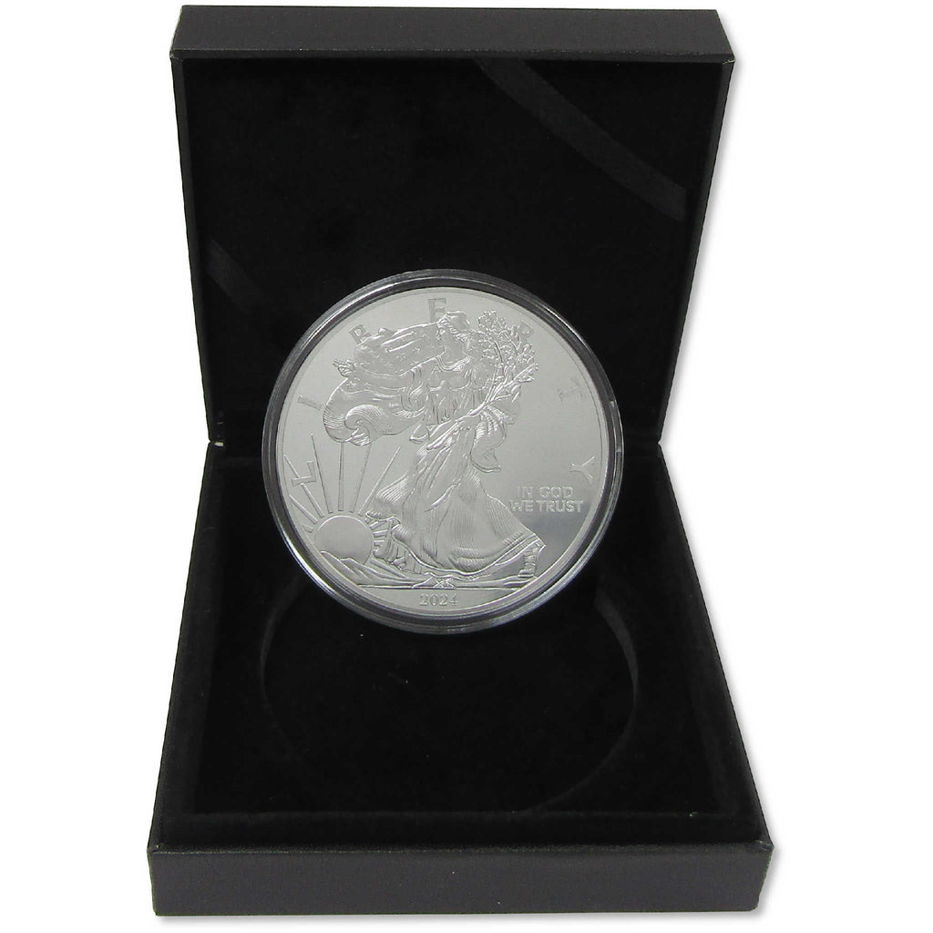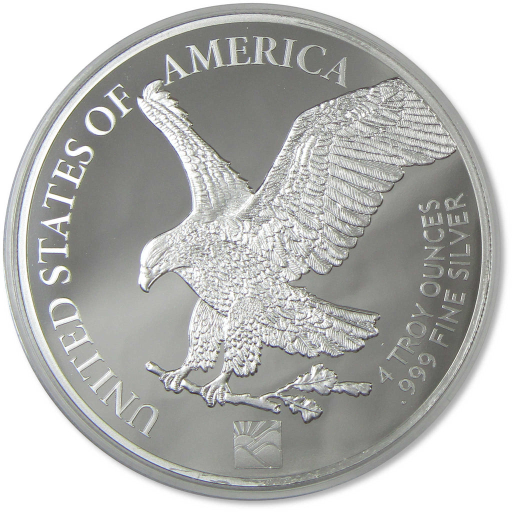Designed by Art of Coins of Germany for Littleton Coin Company, located in New Hampshire USA, this large silver round features a replica of the American Silver Eagle, with the refreshed type 2 reverse, first released by the U.S. Mint in 2021. Struck from 4 oz of .999 fine silver, and measuring an impressive 65 mm in diameter, it comes packaged with a display box.