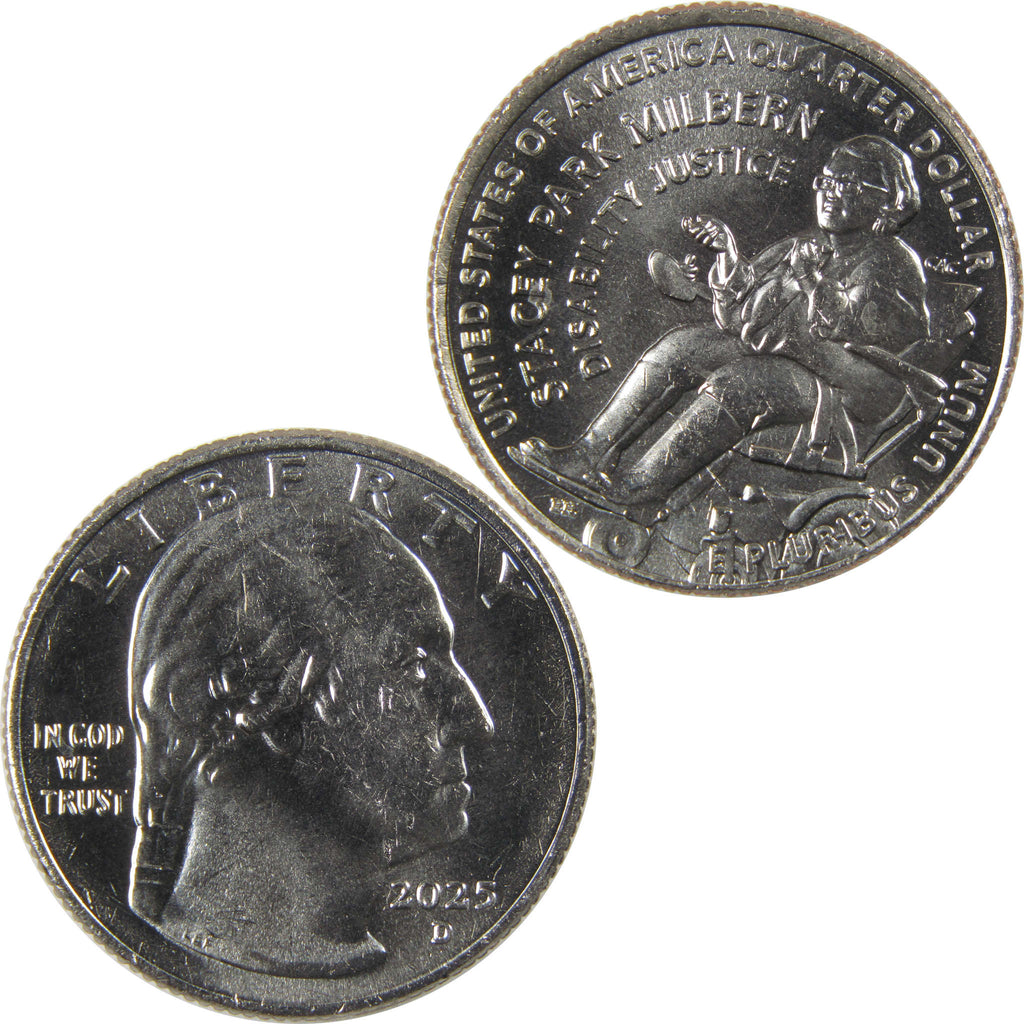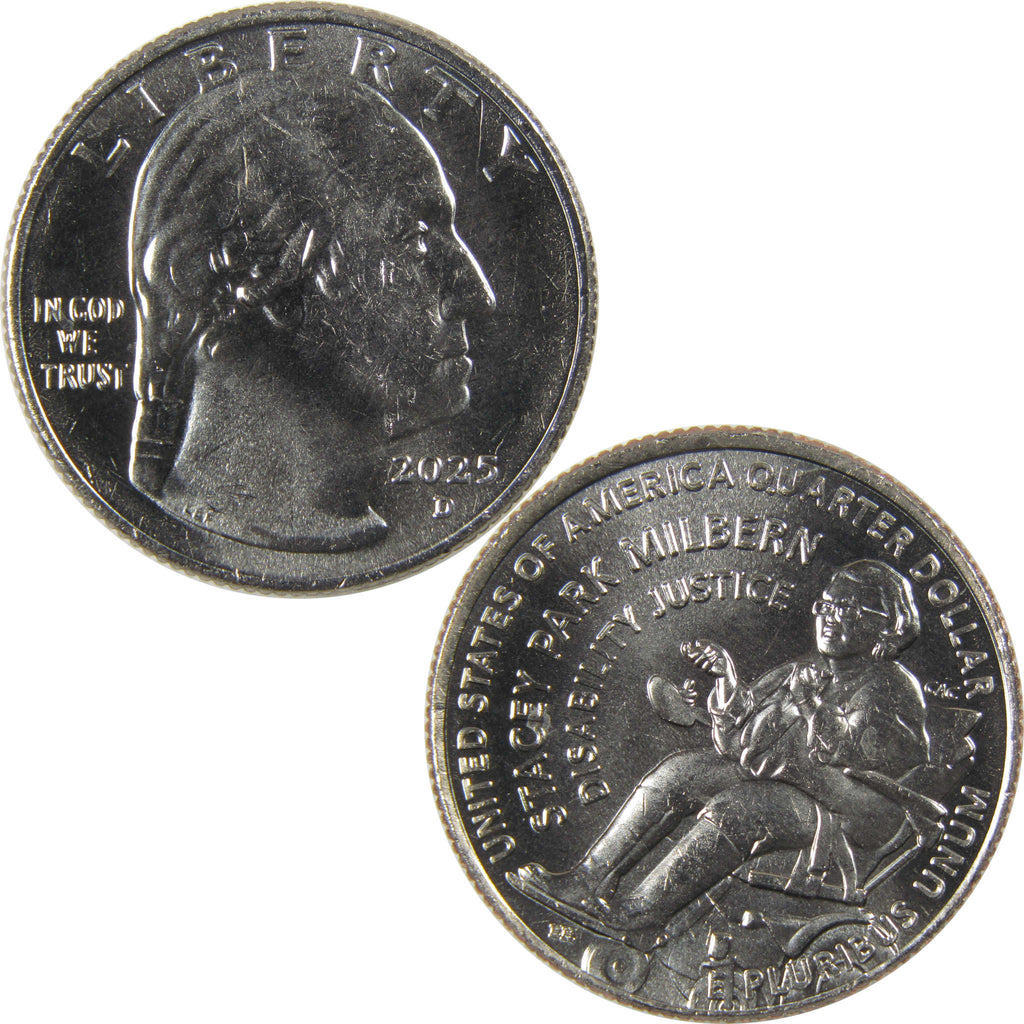 A genuine 2025 D Stacey Park Milbern American Women Clad Quarter Coin, in Uncirculated Mint State Condition