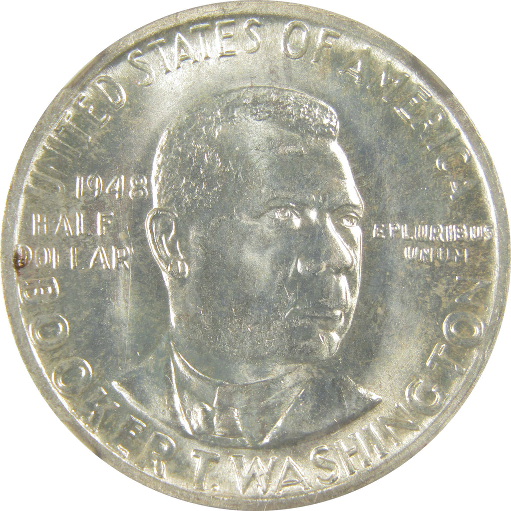A genuine 1948 D Booker T Washington Memorial Commemorative Silver Half Dollar Coin, graded and certified MS 67 by NGC. Contains 90% Silver