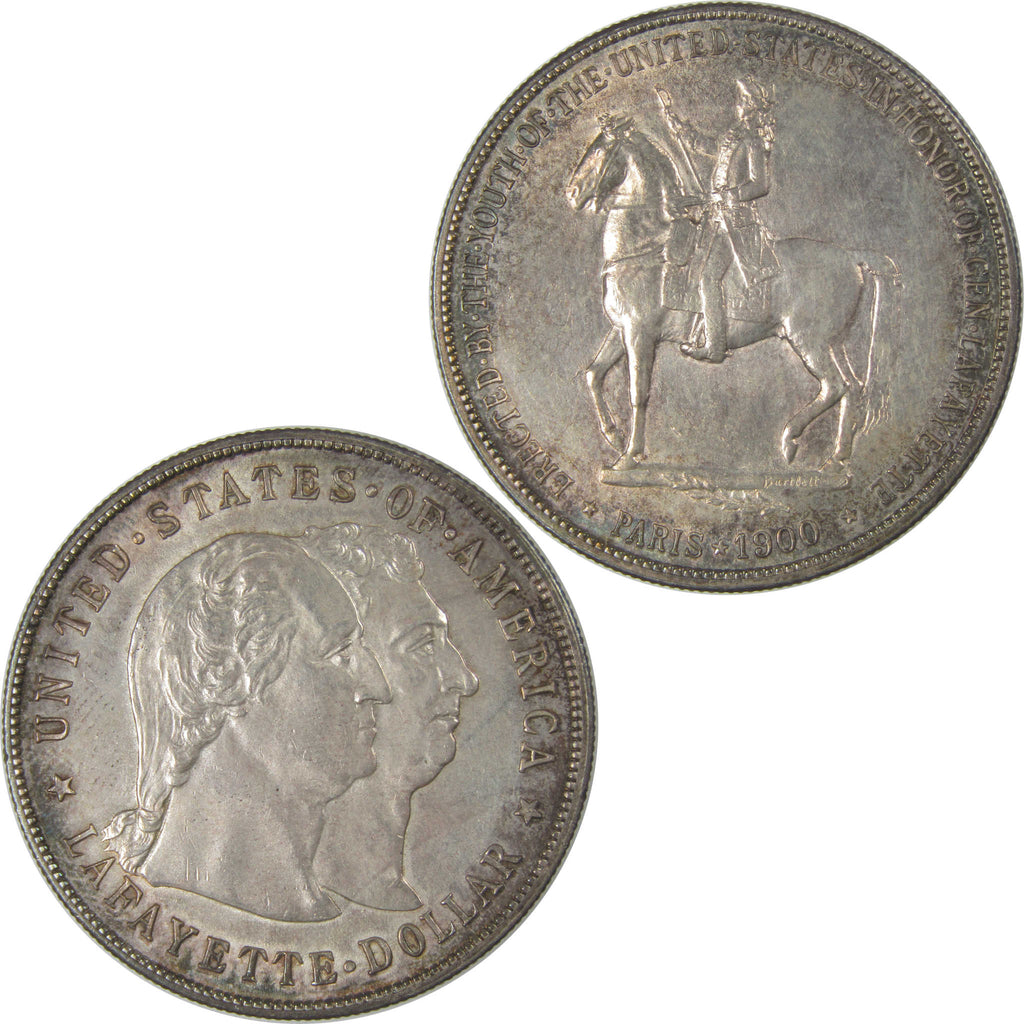 The 90% silver Lafayette dollar was the first commemorative dollar struck by the U.S. Mint. Issued in 1900, it was also the first U.S. coin authorized to bear the portrait of a U.S. president. The obverse of this historic coin shows George Washington and the marquis de Lafayette - who helped the America colonies win the War of Independence. The reverse depicts a statue of Lafayette on a horse. Sale of these coins helped fund a similar statue given to Paris as a gift from the grateful American people.