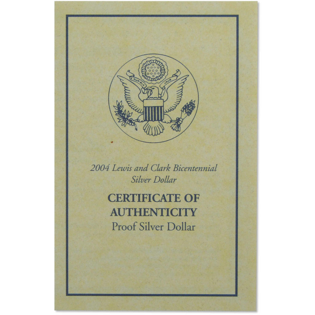 A genuine 2004 P Lewis and Clark Bicentennial Commemorative Silver Dollar Proof Coin. Contains 90% Silver. Comes with the original government packaging, including a certificate of authenticity