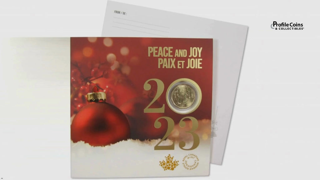 The 2023 Holiday Gift Card Set from the Royal Canadian Mint includes five 2023-dated Canadian non-circulation coins: 5 cents, 10 cents, 25 cents and 2 dollars, as well as a special-themed one-dollar coin. Instead of a classic Loonie, the $1 non-circulation coin in this set features a festive moose that will get you into the holiday spirit. The coin is a set exclusive, it was specially struck for the 2023 Holiday Gift Set and is not available on its own. The obverse of the five non-circulation coins features a marking that includes four pearls symbolizing the four effigies that have graced Canadian coins and the double date of Queen Elizabeth II's reign. The 2023 Holiday Gift Card Set comes in gift card packaging. The five non-circulation coins are set in a blister pack inside the card, and comes with a custom-designed envelope. This is an easy way to acquire a 2023-dated version of the traditional reverse designs of Canadian coinage, in a year when these are only available as non-circulation coins. Limited to 100,000 sets worldwide.