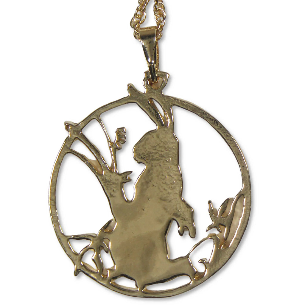 Hand-cut and crafted from a Year of the Rabbit commemorative coin from Liberia, this pendant measures an 1.25 inches in diameter and features select 14k gold and rhodium plating. Comes with a 20 inch gold-plated chain.